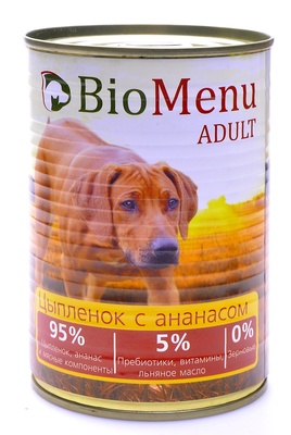 BioMenu Консервы для собак цыпленок с ананасом